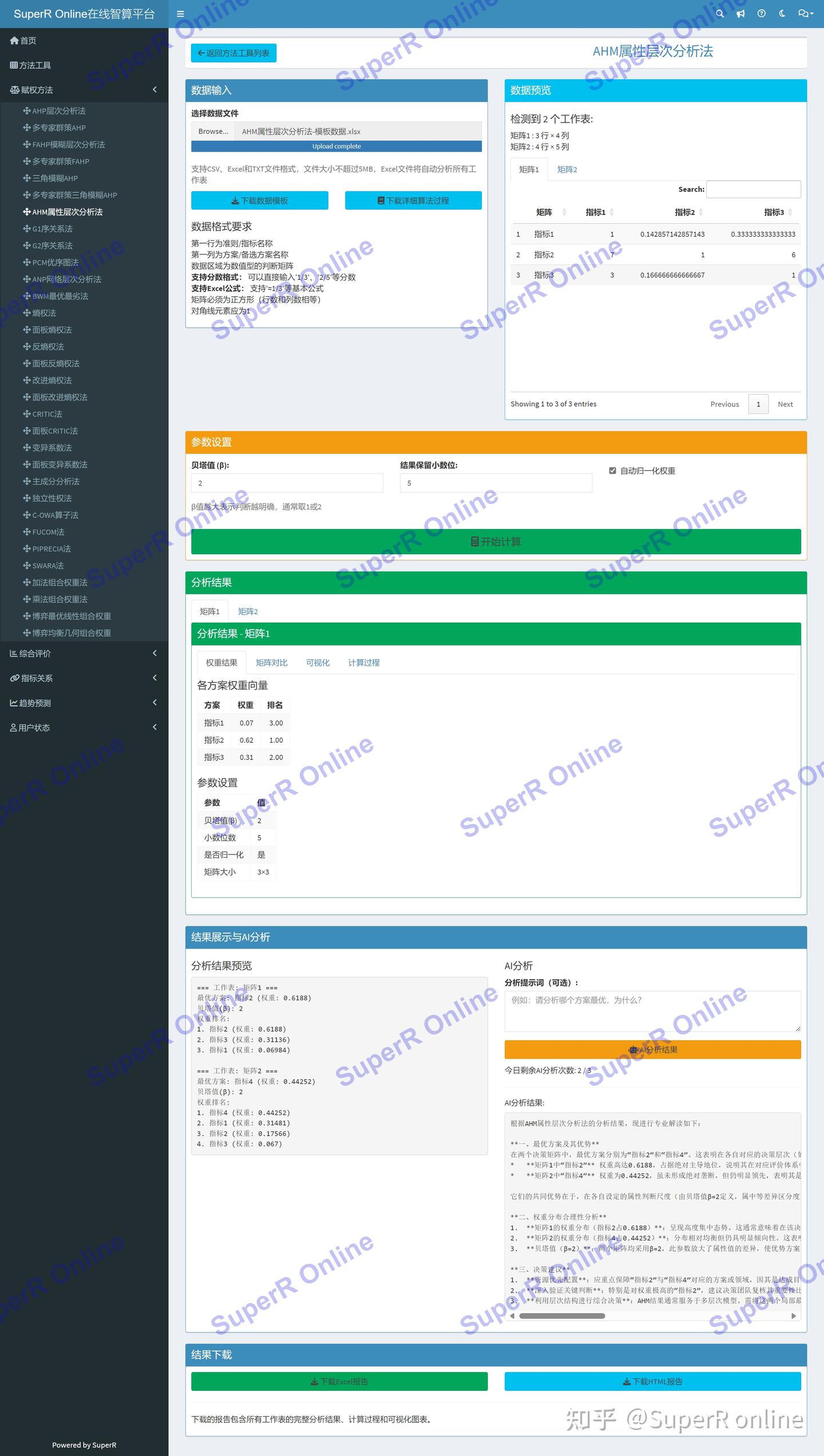 AHM属性层次分析法分析平台提供以下核心功能: