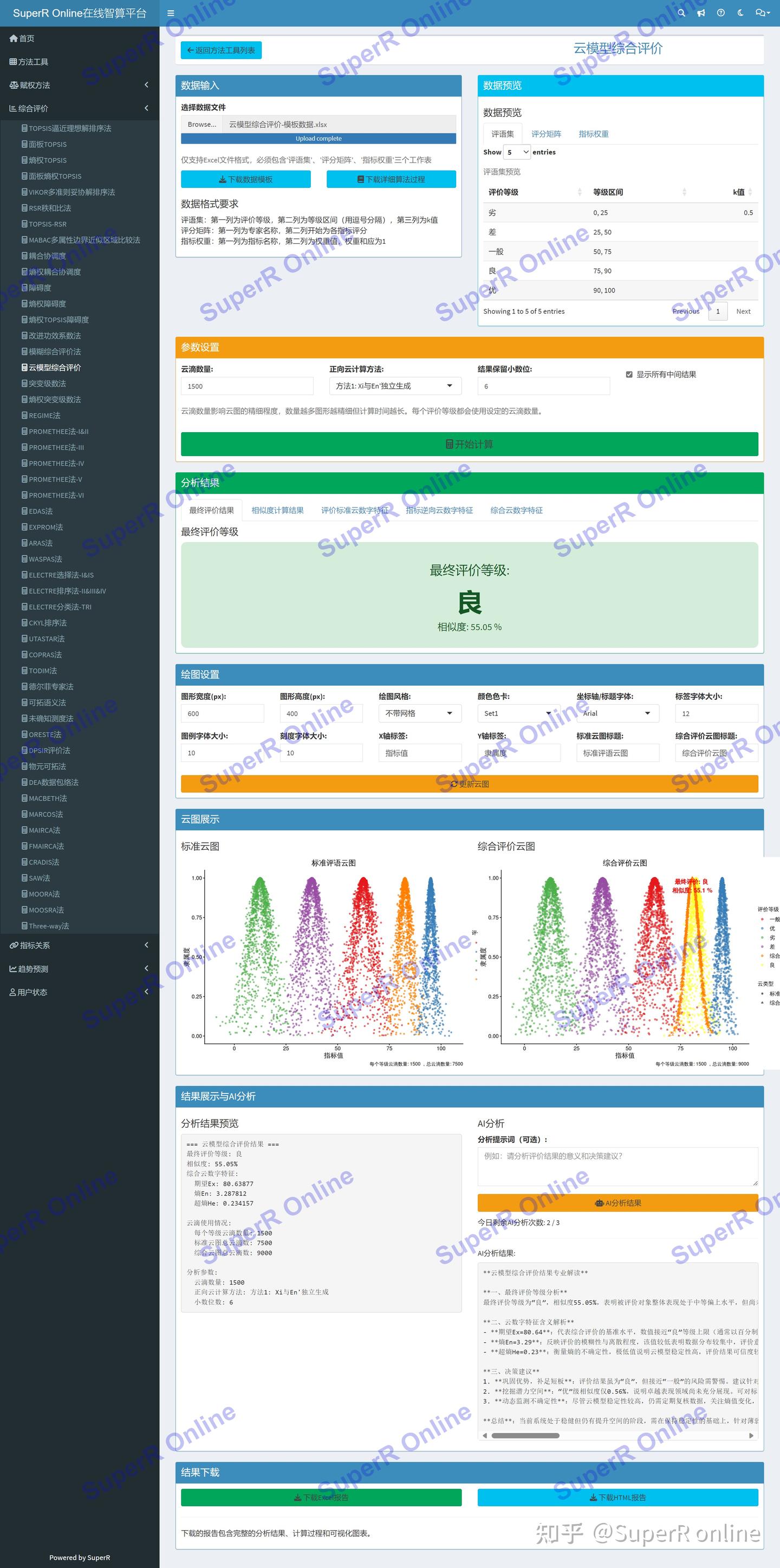 - 云图展示:标准云图、综合评价云图,支持绘图参数自定义(颜色、字体、标题等)。