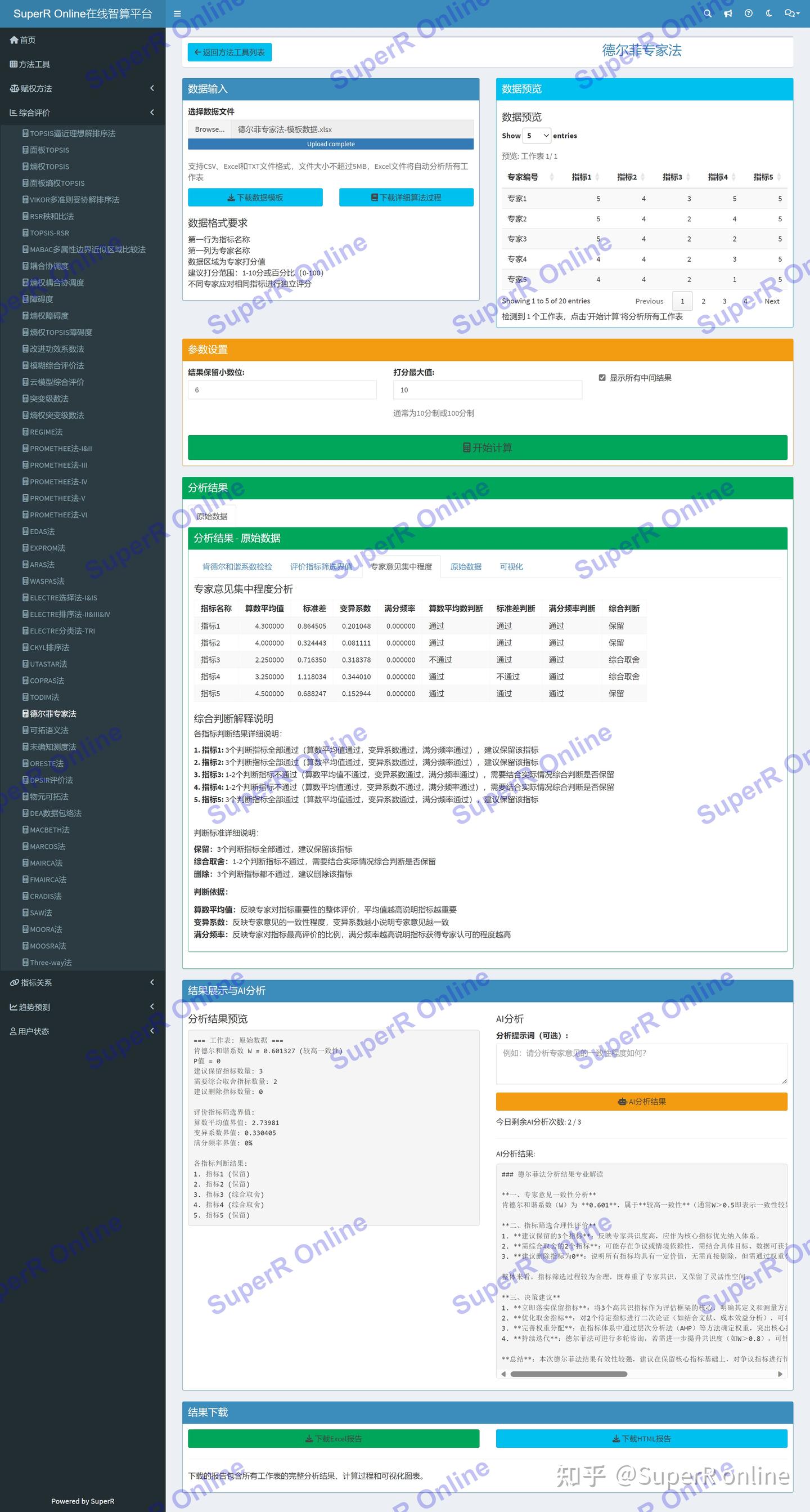 A: 支持。平台允许上传包含多个工作表的Excel文件,每个工作表可代表不同轮次、不同专家群体或不同评价体系的数据,系统会分别分析并输出结果,便于对比和迭代。