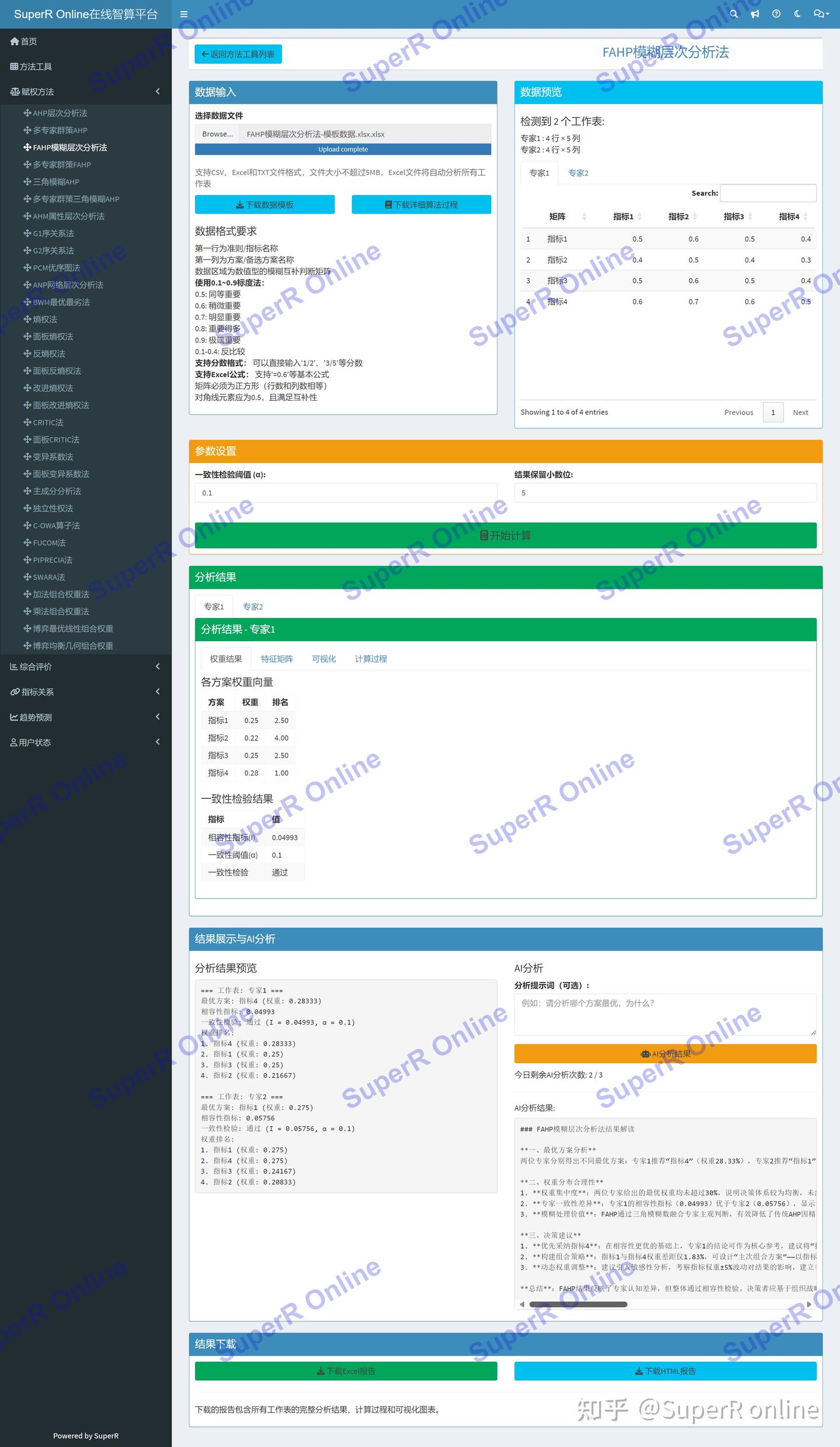 FAHP模糊层次分析法分析平台提供以下核心功能: