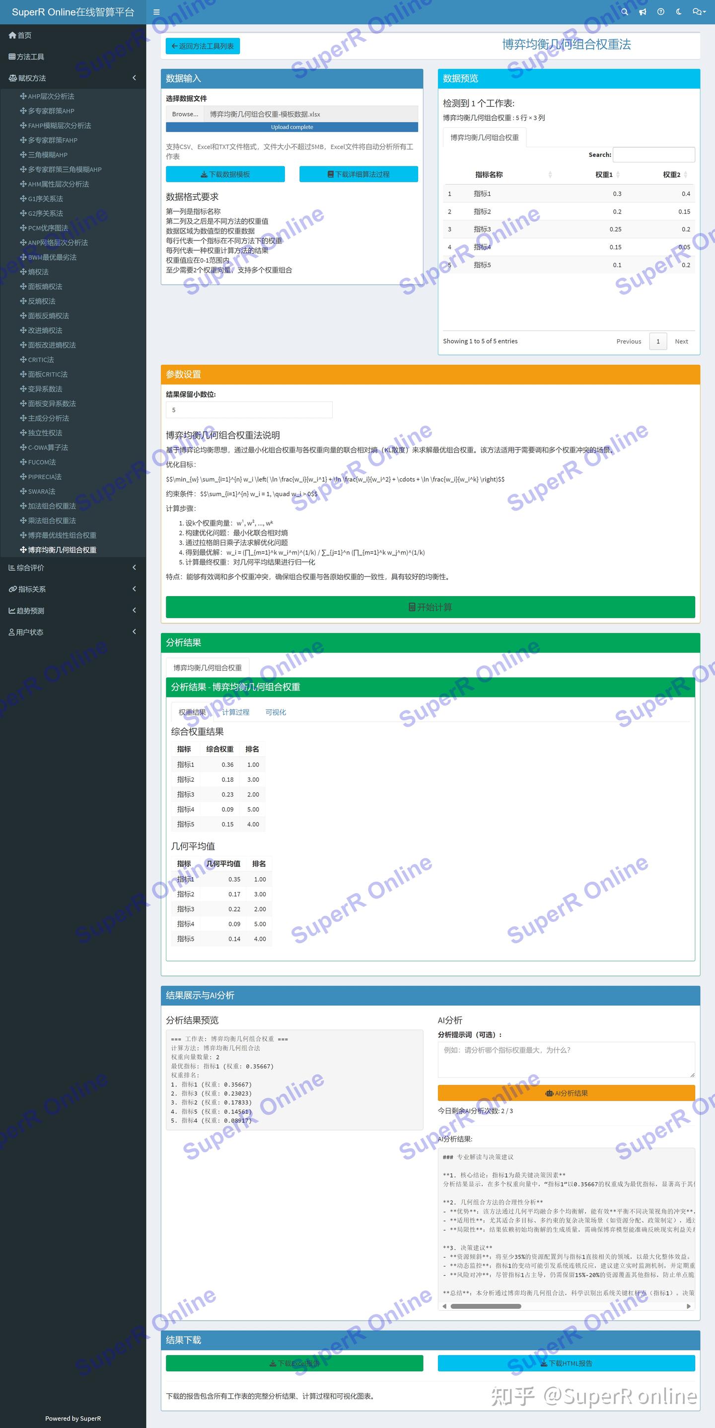 博弈均衡几何组合权重法分析平台提供以下核心功能: