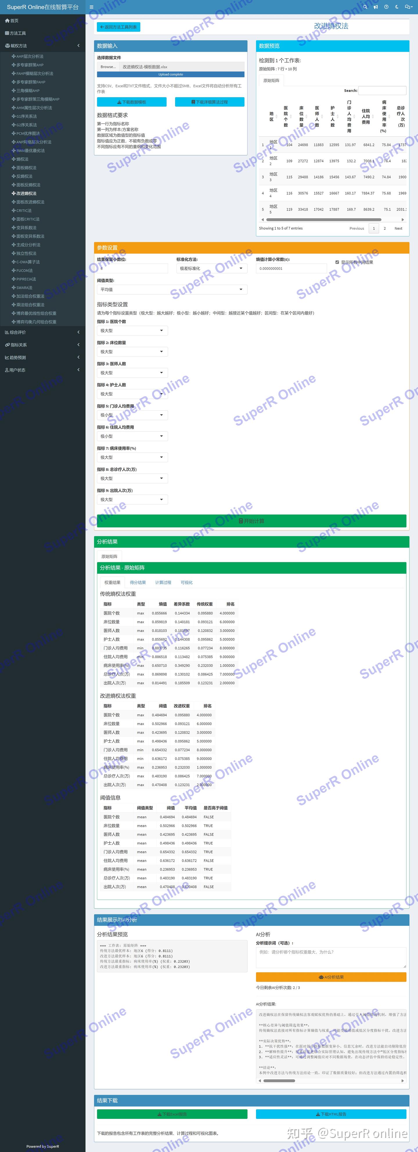 改进熵权法分析平台提供以下核心功能: