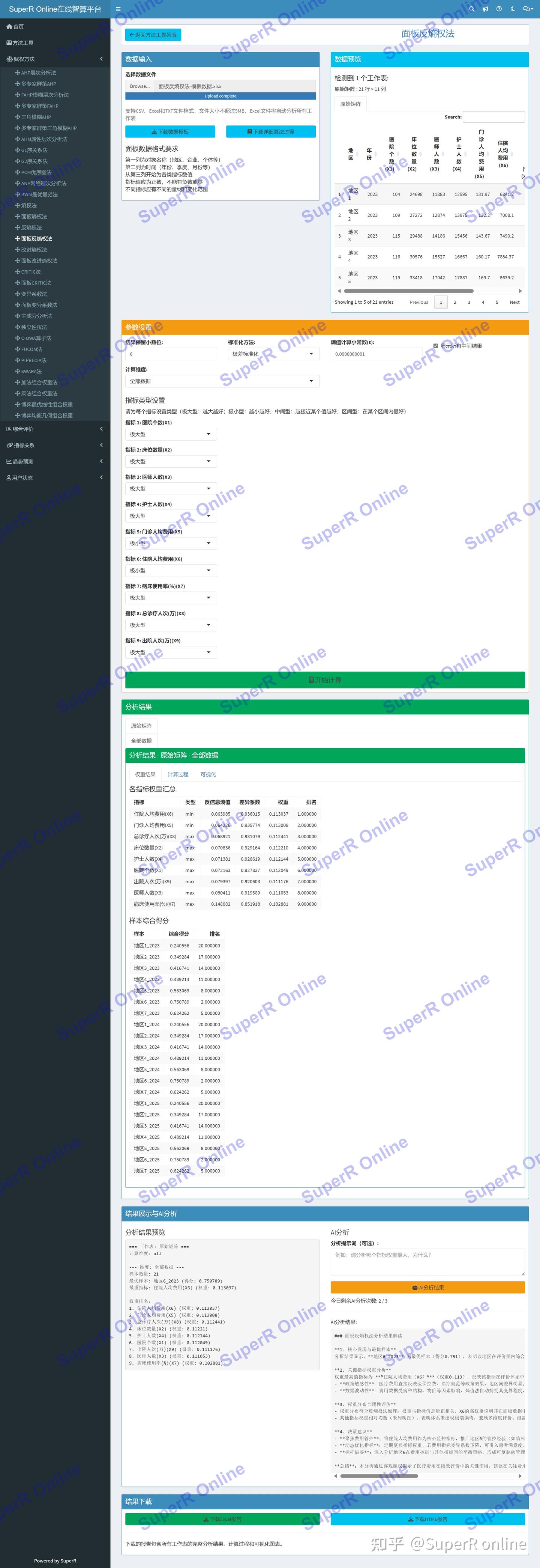 平台界面包含:数据上传区、参数设置区、多工作表预览、分析结果展示和AI分析模块