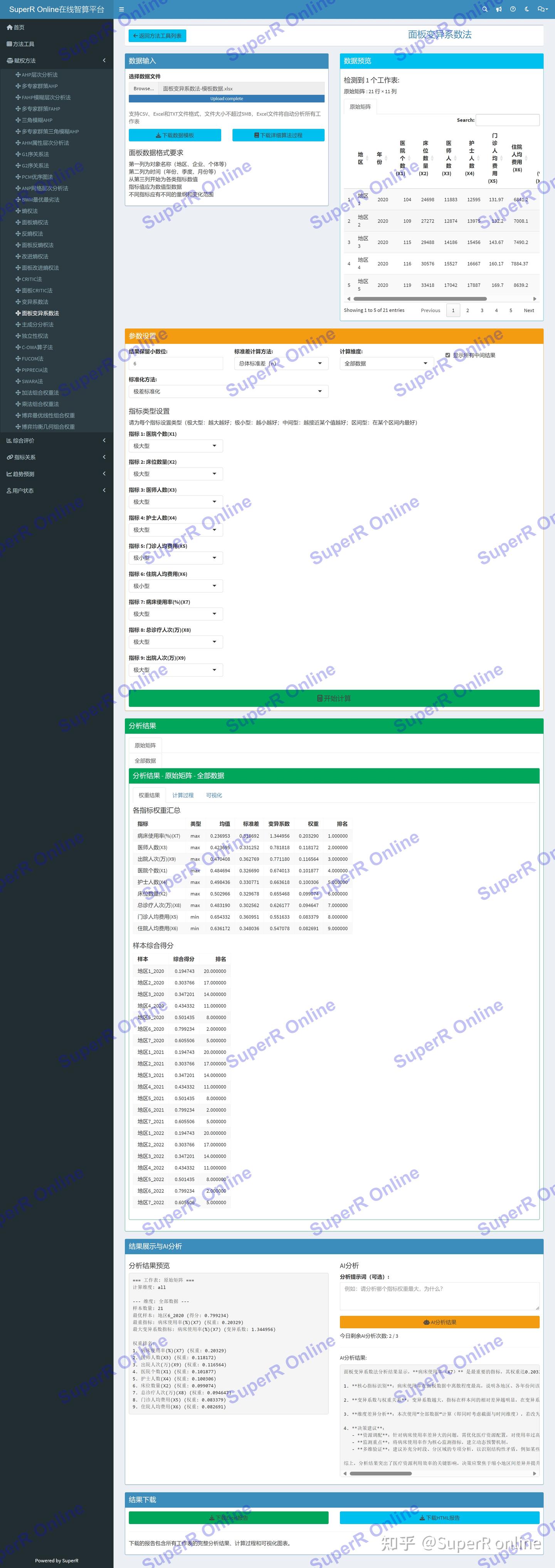面板变异系数法分析平台提供以下核心功能: