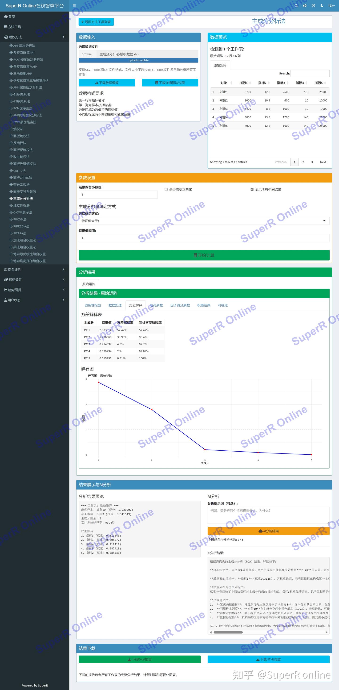 主成分分析法分析平台提供以下核心功能: