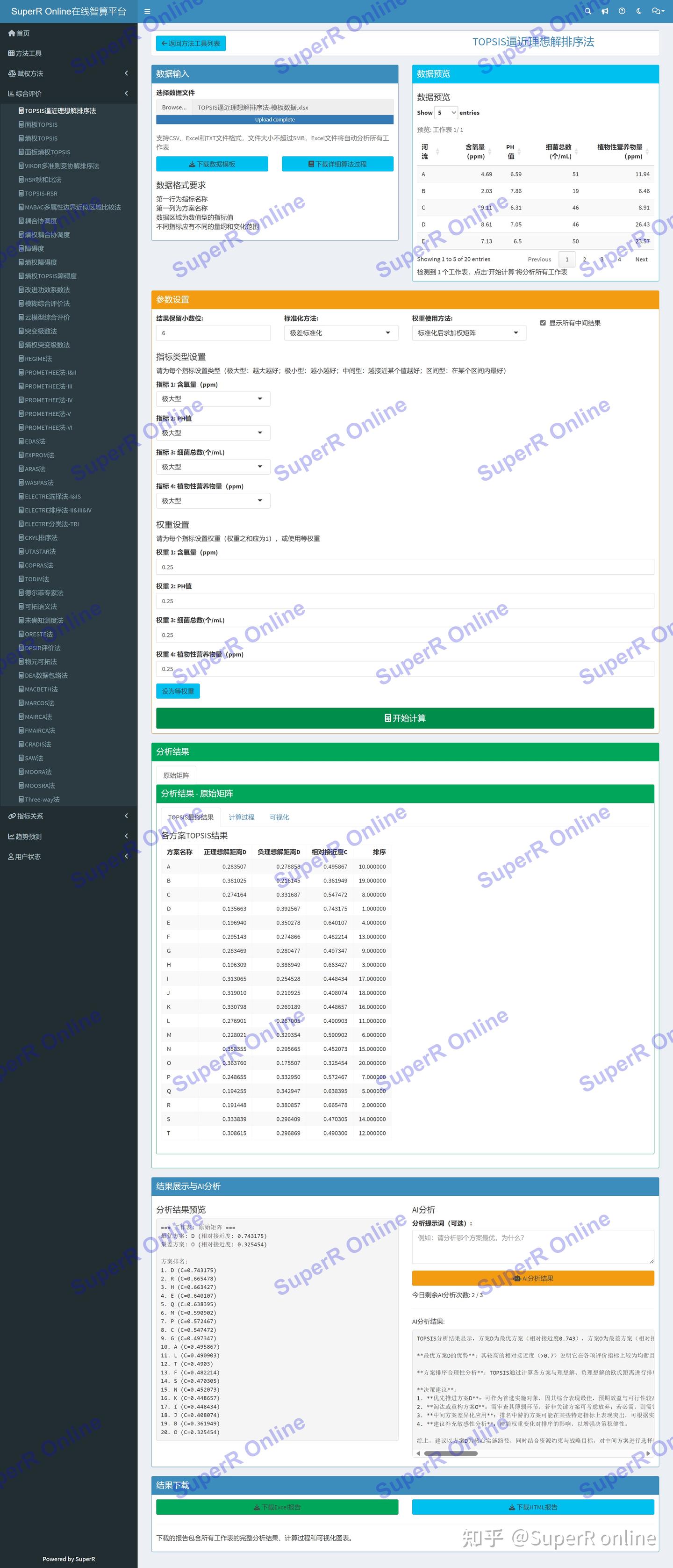 TOPSIS 逼近理想解排序法平台提供以下核心功能: